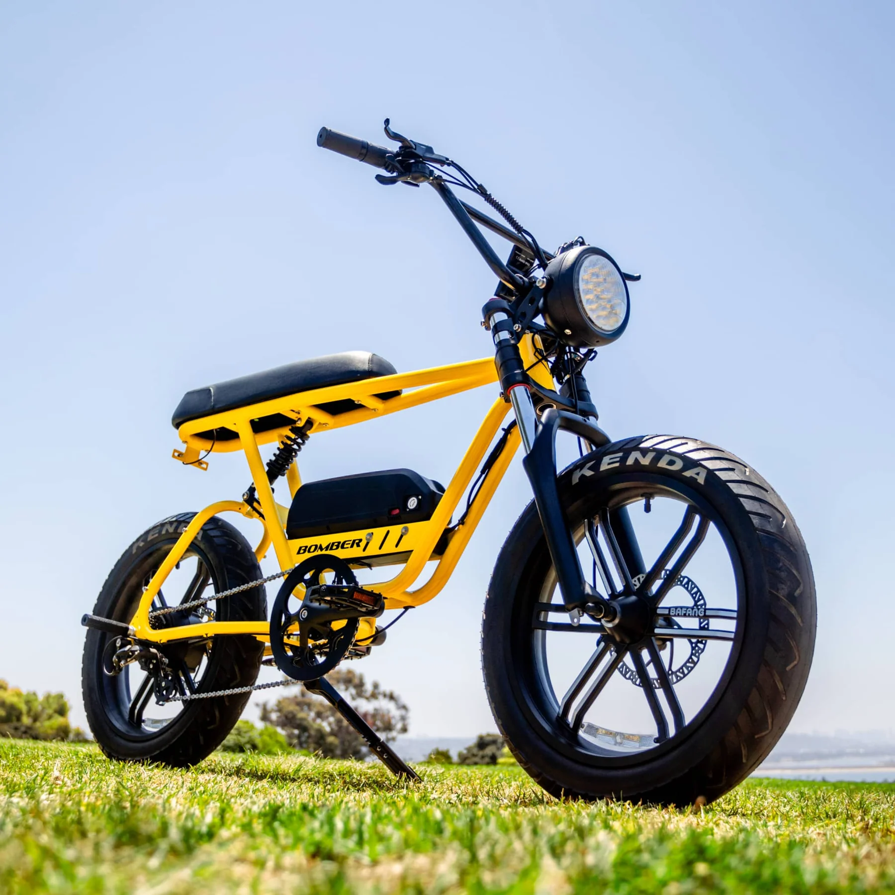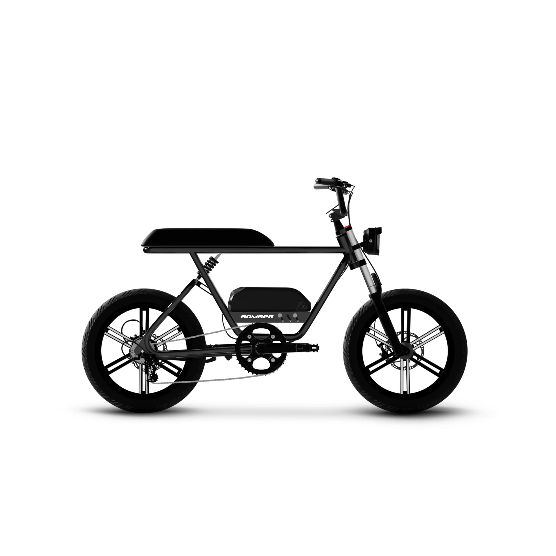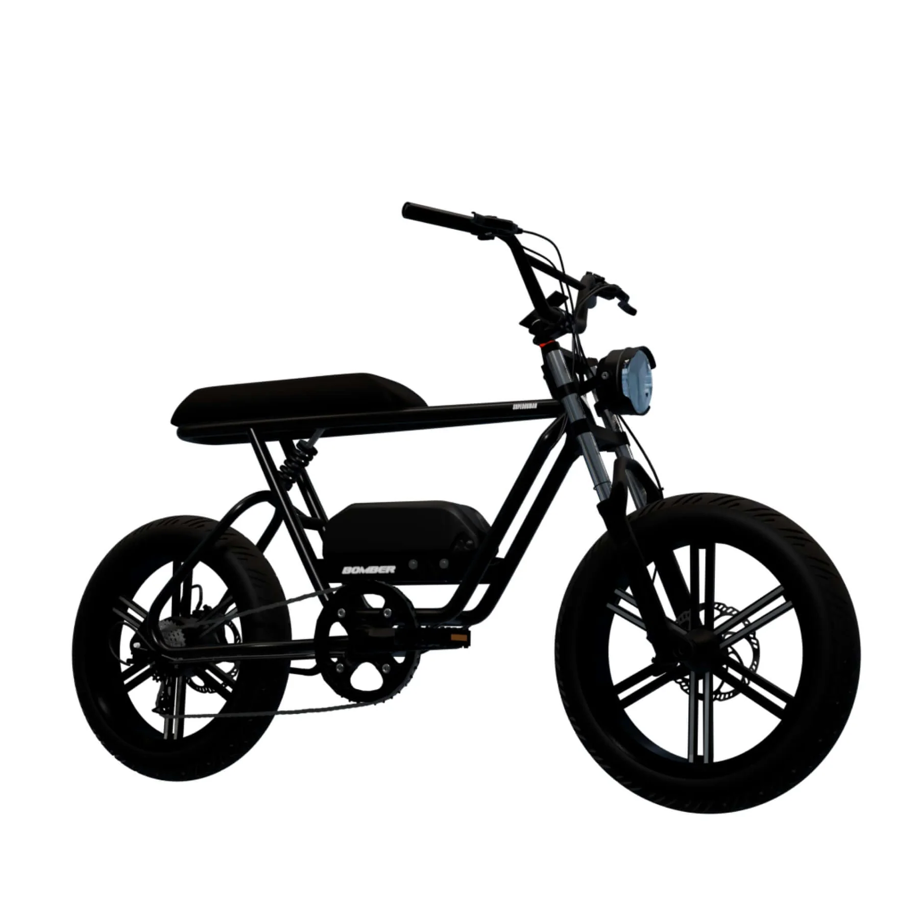 Meet the Bomber Fat Tire Electric Bike! All the power of a retro pocket bike, none of the BS. Have a blast cruising around all day on any surface with a comfy bench seat, 48V battery, and rock-solid dual suspension. Choose from four colors and two unique comps to create your perfect ride.